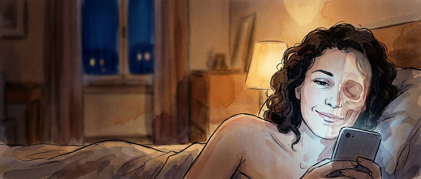 Because the whole world is designed to help you not think about it. The creams, the filters, the angles, the lighting, the surgery, the denial. An entire economy built on the agreement that we will all pretend time isn’t happening.